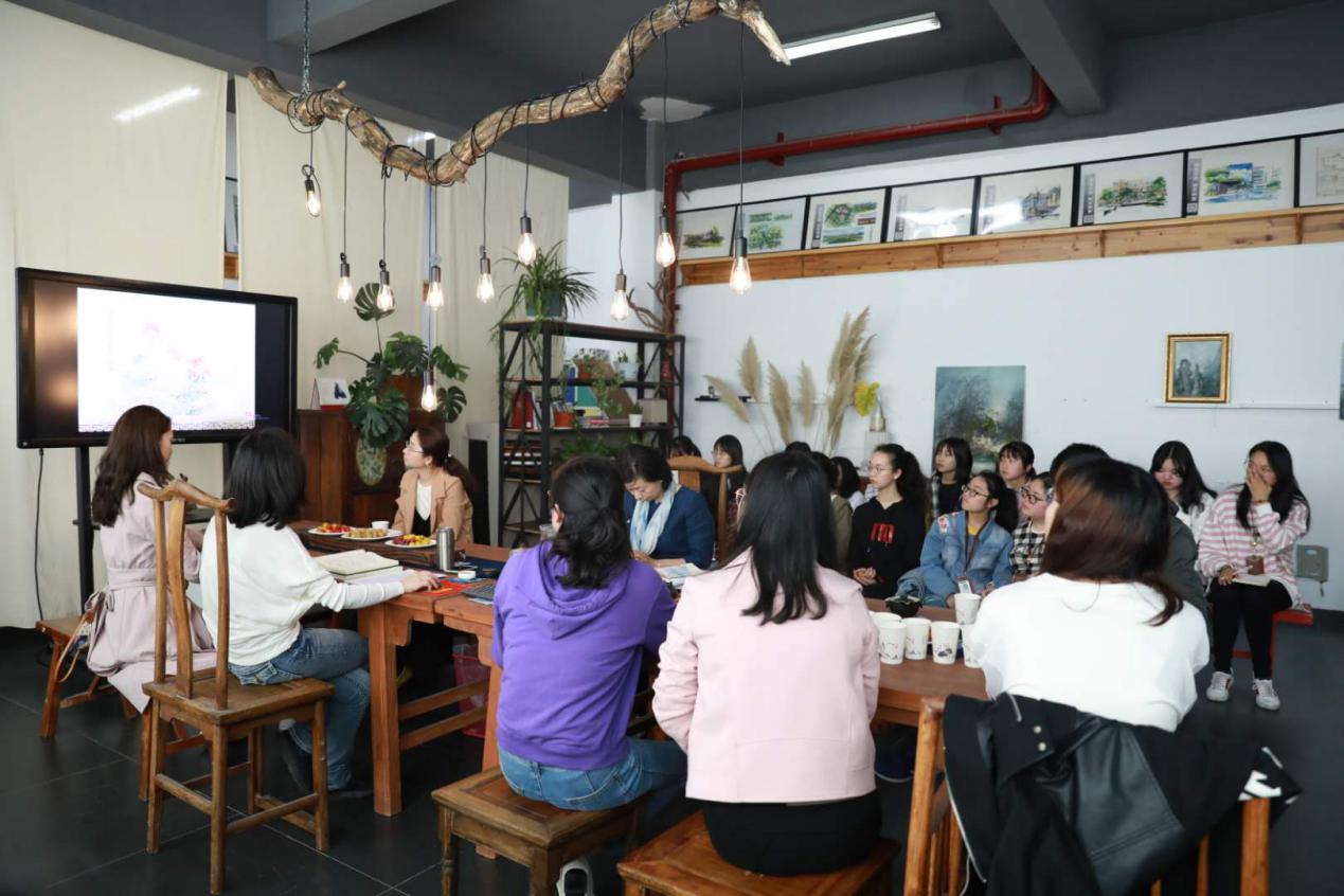 展卷闻书香,肆月鸿鹄志。4月19日下午1:30分,蓝海悦读节师生读书沙龙活动温情绽放。古朴、典雅的美悦空间,精美、温润的卷卷书册,光亮、诗意的树形吊灯,一切都那么意味横生! 常州画派植根于晋陵古韵,功底深厚,书画文心浑然天成。周教授不仅对左氏四代才女的诗书画作进行艺术品鉴,更是透过书画背后,将百年历史嬗变,艺海文心的生命觉醒和盘托出,墨韵书痕、画品意趣、心灵风雨、生命顿悟,宛若一次穿越和洗礼,周教授语词清丽,雅致之余充满睿智,精妙之时心领神会。 参与此次活动的师生们,更是如临艺境,百年文心、诗书画情,仿佛余香一缕,久久回味不绝。她们不时的记下周教授的精妙之词,不时的拍照存读,不时的回放经久不衰的百年文心,清晰的笔记、专注的眼神、会心的微笑,品读与聆阅,仿佛是一次朝圣之旅,透过诗书画韵,遇见生命,如期绽放,意蕴摇曳! 肆月如唔,书趣如斯,期望更多美好持续而来!(图文中心)