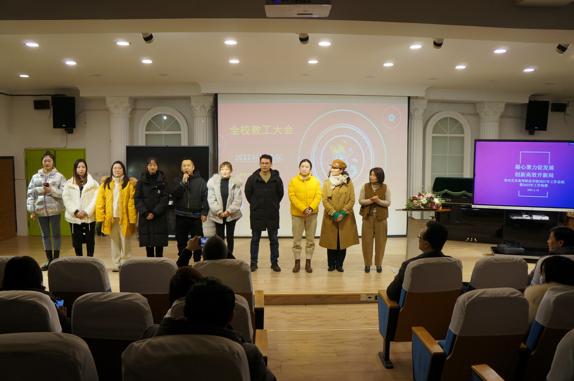 2月18日上午,常州艺术高等职业学校新学期全体教职工大会在综艺楼阶梯教室召开,大会由熊伟忠副校长主持。 在欢乐祥和的虎年出生教职工大拜年后,校党总支书记、校长高慰首先回顾了2021年学校在队伍建设、教育教学、师生发展、招生就业、校园美文化建设、融入区域发展等方面取得的可喜成绩,高度赞扬了广大教职工在过去一年里的无私奉献和卓有成效的工作。随后,高慰校长就2022年的工作目标与大家进行了交流。2022年,学校在做好各项常规工作要求和目标达成的基础上,要重点办好国家文旅部(教育部)新一届艺术教指委和旅游行指委成立大会暨职业教育产教融合对话高峰论坛活动和建校50周年办学成果展示周活动;要在常州“532战略”及殷杏泰一体化产教融合示范区等建设蓝图中,寻求融入发展的新定位、新目标与新空间,要突破校园围墙限制和人才培养传统模式与惯性思维,积极探索师生发展、产教融合、区域融合、校园美文化等运营模式的创新实践,为区域发展和融入“文旅中轴”事业发展创造新业绩;最后,他号召广大教职员工继续发扬开拓创新、勇于争先的精神,在常高艺新的50年征程中开好头,迈大步,把常高艺事业推向更加美好的明天。 会上,杭国金副校长就开学工作和疫情防控工作进行了强调部署;史冲副校长对新学期教学重点工作进行了解读。 最后,熊伟忠副校长对安全工作和后勤工作进行强调,并对2022年招生就业工作进行了动员。(张经亮)