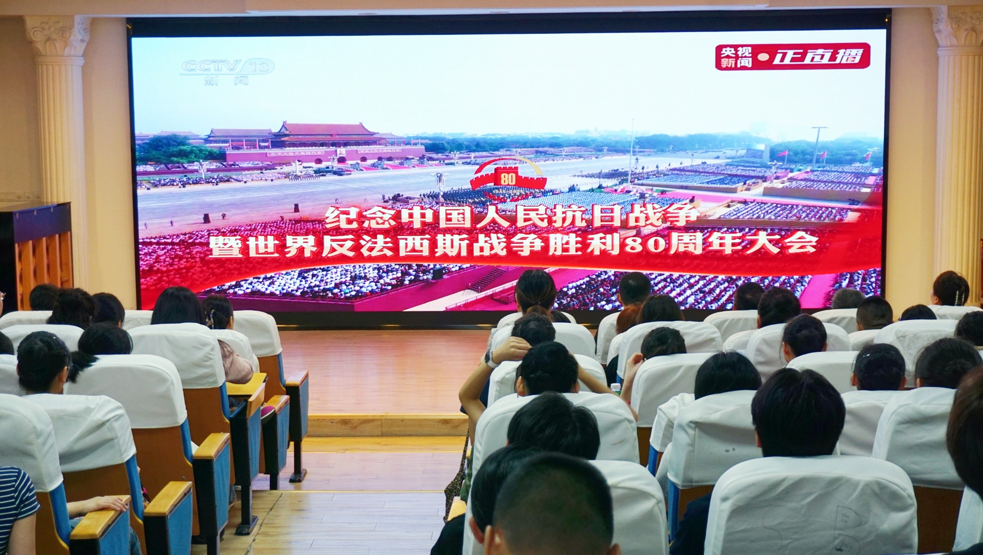 9月3日上午,纪念中国人民抗日战争暨世界反法西斯战争胜利80周年大会在北京天安门广场隆重举行。常州艺术高等职业学校组织全体学生、各系部教职工收看大会直播,通过屏幕共同见证这场国家级纪念活动。