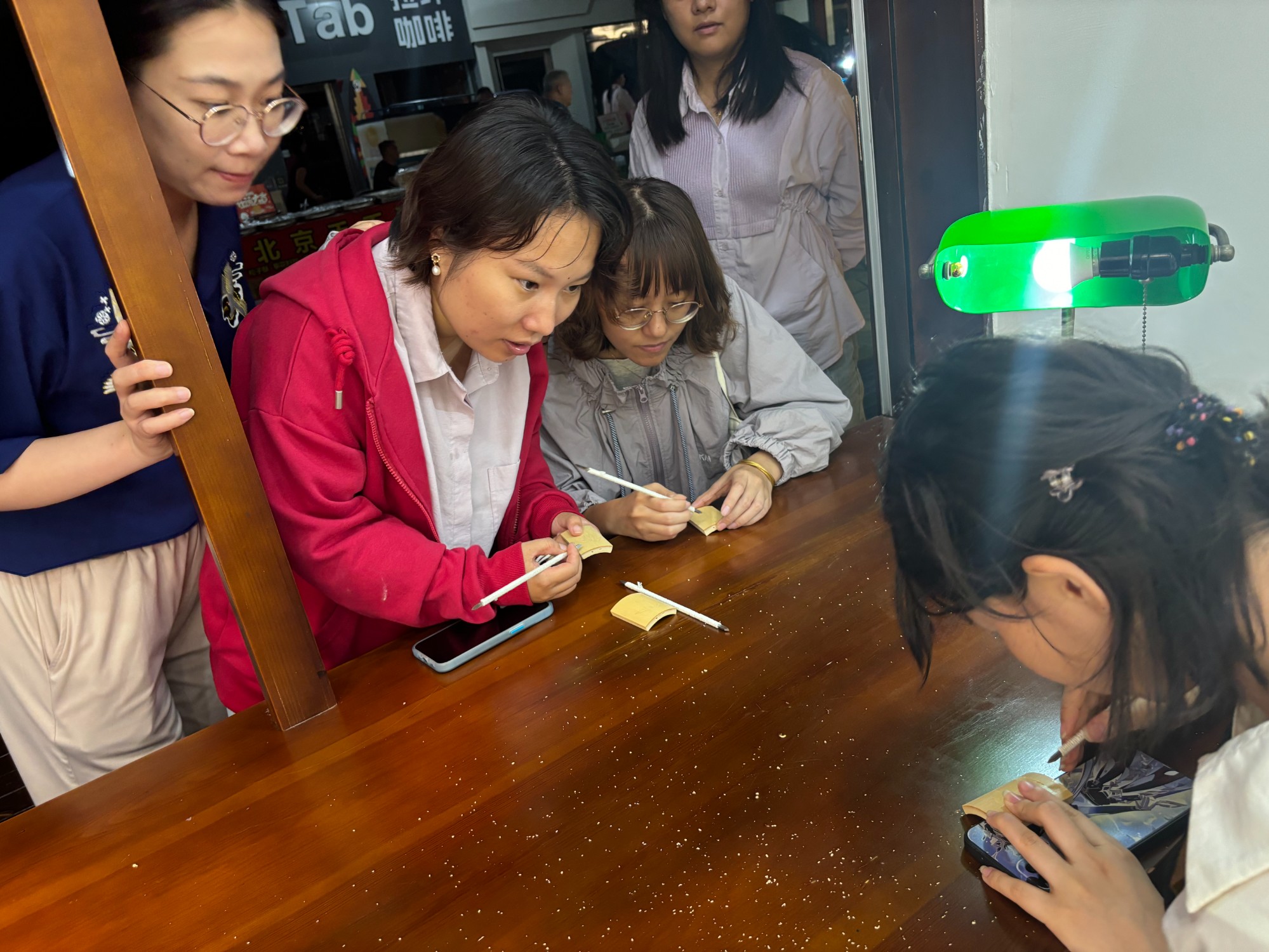 活动现场,徐雪草老师与同学们向市民生动讲解了留青竹刻的历史渊源、制作工艺与文化内涵。从竹材的挑选、青皮的保留,到刀法的运用与图案的设计,每一个细节都娓娓道来。同学们也积极与观众互动,分享学习心得,展示学生作品。不少市民驻足欣赏,近距离观看同学们现场创作,精湛的技艺引得大家纷纷拍照留念。一位带着孩子的家长感叹:“这样的活动非常有意义,让孩子在团圆节日里接触到地道的常州非遗,既长知识,也增进了文化认同。”
